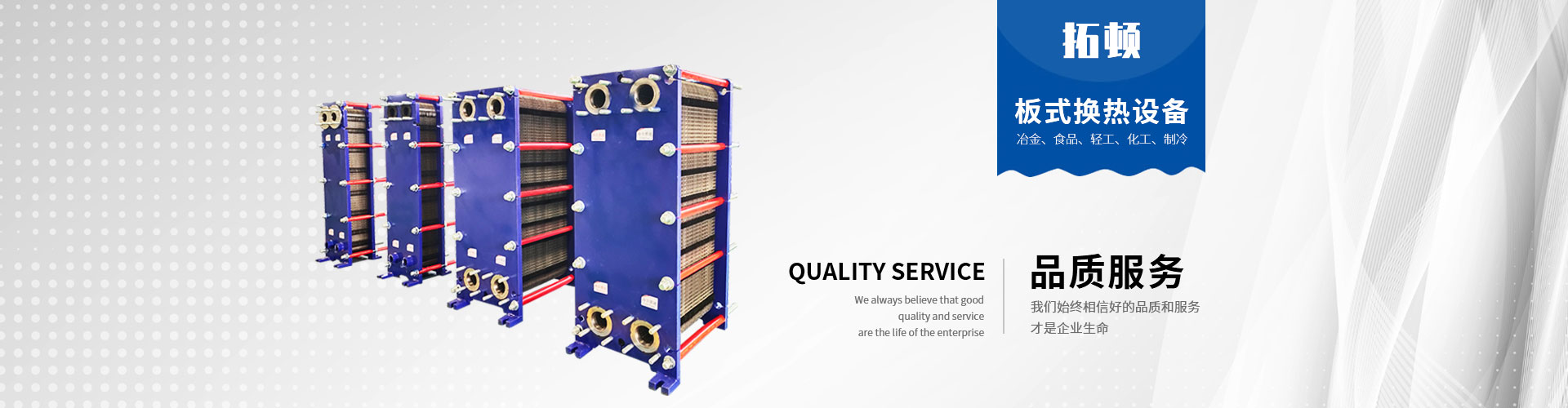 經(jīng)過(guò)持續(xù)努力,拓頓取得了質(zhì)量、健康和環(huán)境體系的“三標(biāo)一體”認(rèn)證、美國(guó)ASME 認(rèn)證。制造許可證等體系認(rèn)證; 公司以8大族群30余種換熱產(chǎn)品為載體, 為化工、冶金、供熱、機(jī)械油冷、醫(yī)藥、造紙、輕紡、船舶、石油、電力、集中供暖、空調(diào)制冷、食品飲料、海水淡化、海水養(yǎng)殖,生物質(zhì)能分布式能源等行業(yè)提供個(gè)性化、專業(yè)化的解決方案用于加熱、冷卻、蒸發(fā)、冷凝、殺菌毒、余熱回收等。